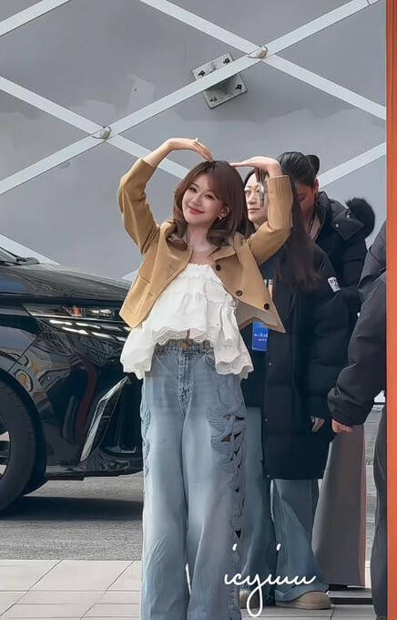 其实仔细看这套穿搭,问题出在三个地方:牛仔裤侧缝的镂空剪裁刚好卡在大腿最粗的位置,松垮的裤脚让小腿线条完全被藏住;宽肩吊带没有腰线设计,加上她当天可能没做造型,自然状态下的腰腹难免有些松弛。更关键的是拍摄角度——路人手机从下往上拍,把161cm的身高硬生生拍出五五分比例。有造型师朋友吐槽:“这种‘反人类’角度,换谁来都得胖三斤。” 可抛开镜头滤镜,赵露思这次“翻车”反而透着真实。她团队工作人员私下透露,当天是凌晨四点起床赶高铁,到长沙后直接进综艺录制现场,连轴转12小时后才抽空买咖啡。“她当时就想穿得舒服点,牛仔裤选大一码是为了方便活动,谁能想到被拍了呢?”确实,比起那些机场摆拍两小时的明星,这种带着生活褶皱的状态,反而让路人觉得“原来女明星也有不想精致的时刻”。